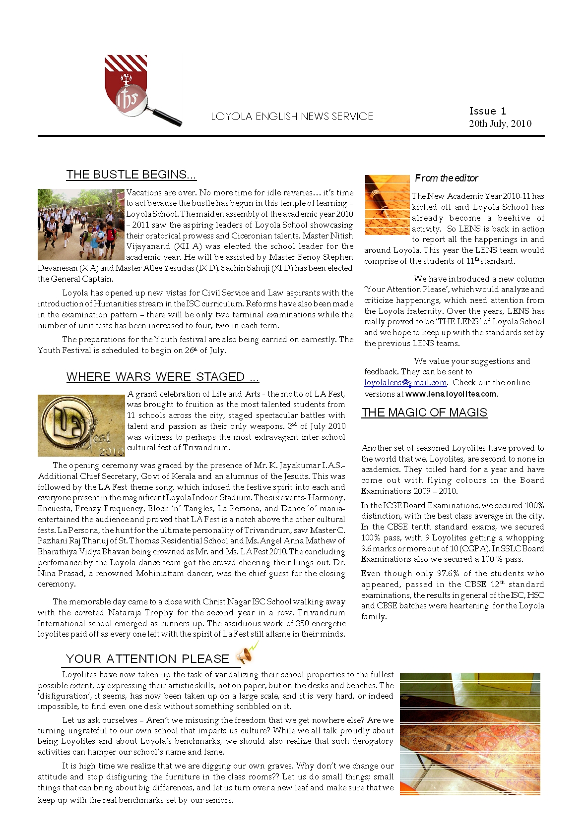 In the ‘Your Attention Please’ column, we have taken up an issue of grave importance for all Loyolites – the ‘dormancy’ of the English speaking squads. The slightest positive response from your part will be a great achievement for all of us.
